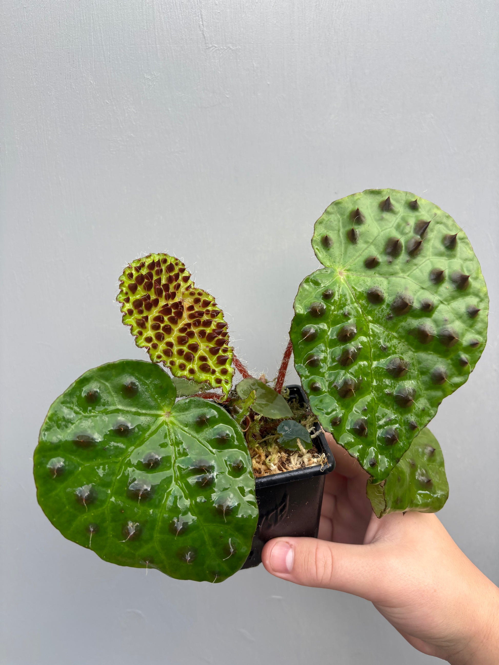 With velvet-green leaves studded with bold black bullae and vibrant orange undersides, this rare beauty demands attention from every angle. Native to Vietnam’s misty forests, she thrives in warm humidity and gentle, indirect light. Perfect for plant lovers who want something extraordinary in their collection.