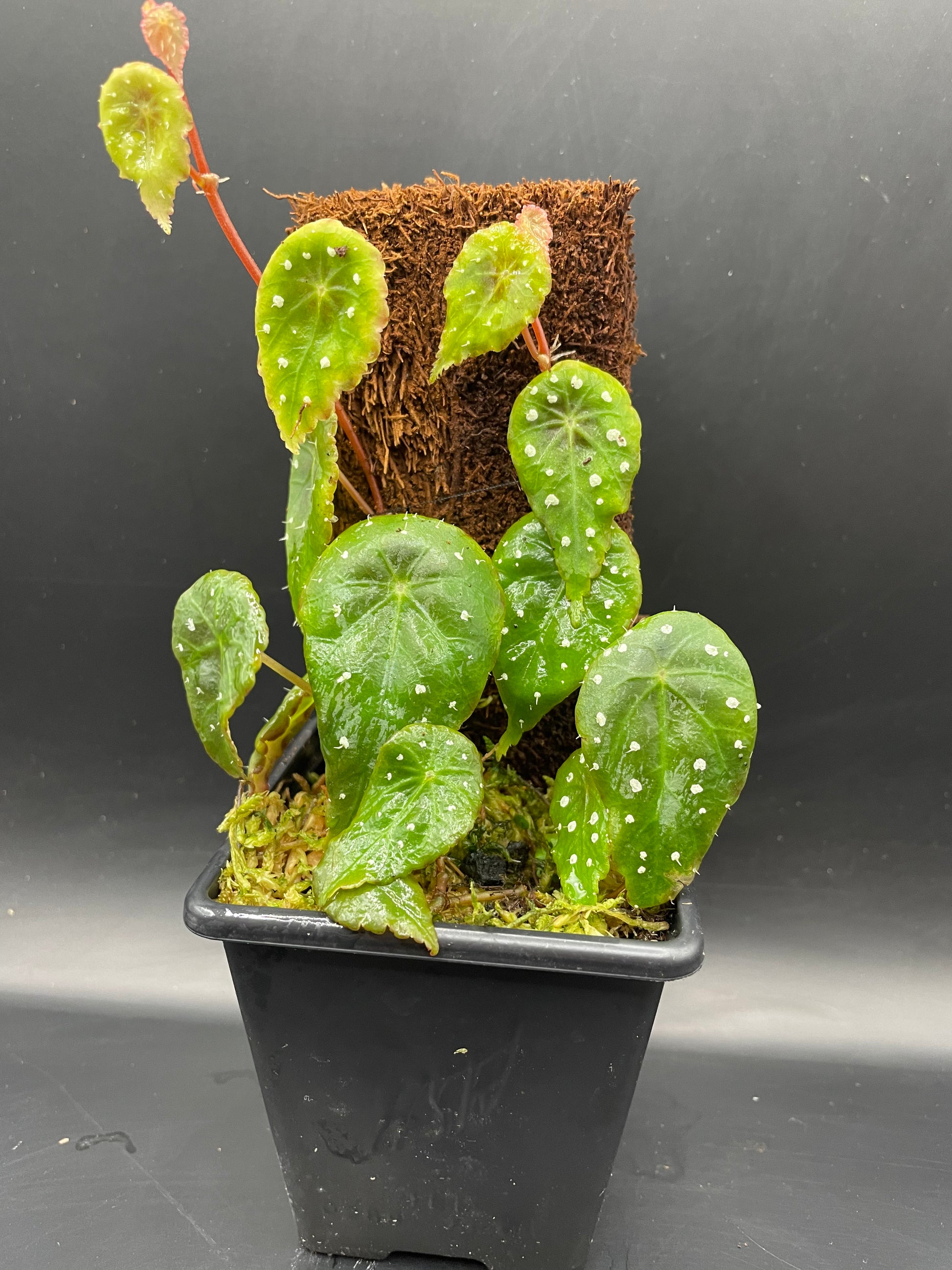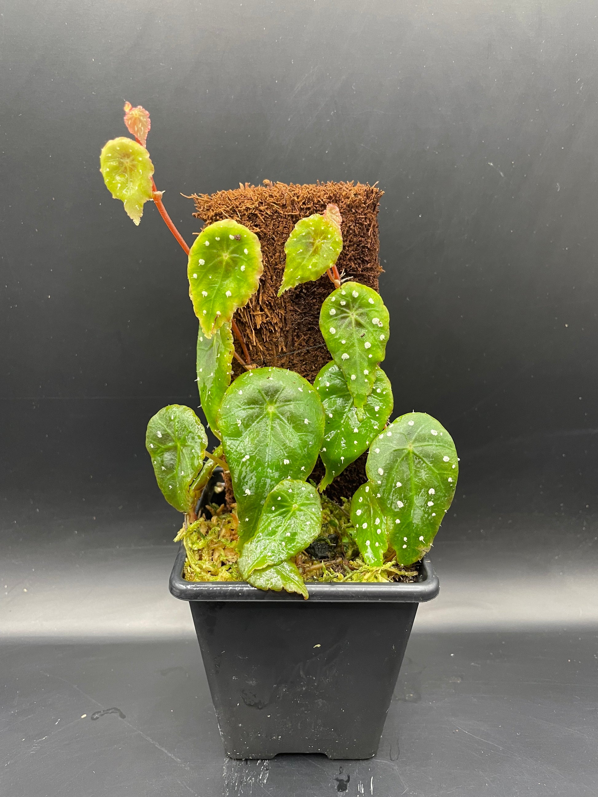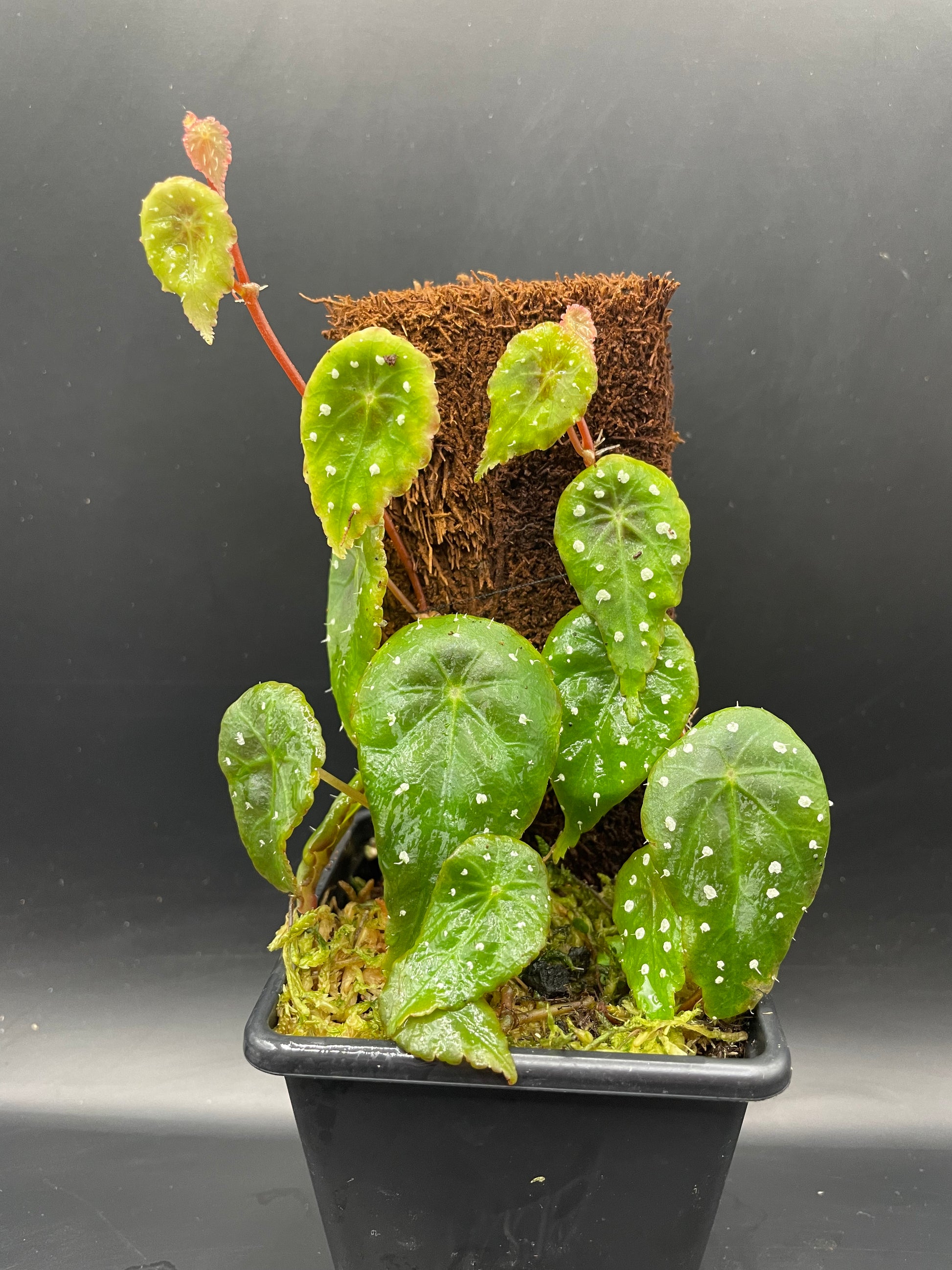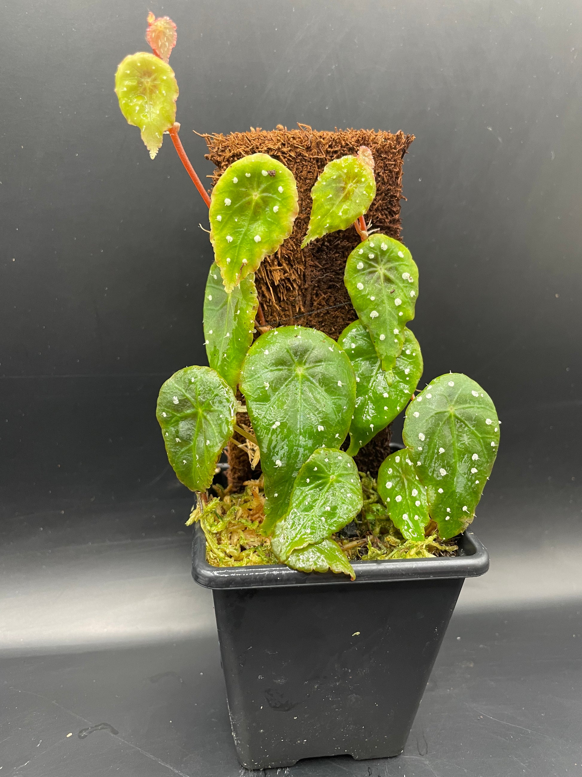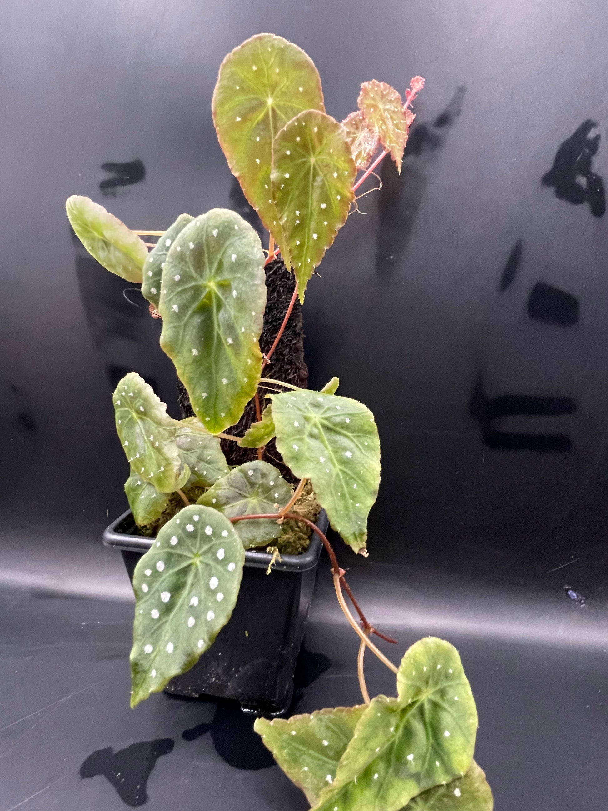 Stunning polka dot begonia that has green leaves with white spots, and mini hairs forming from the white spot. Rarely offered in the Uk.