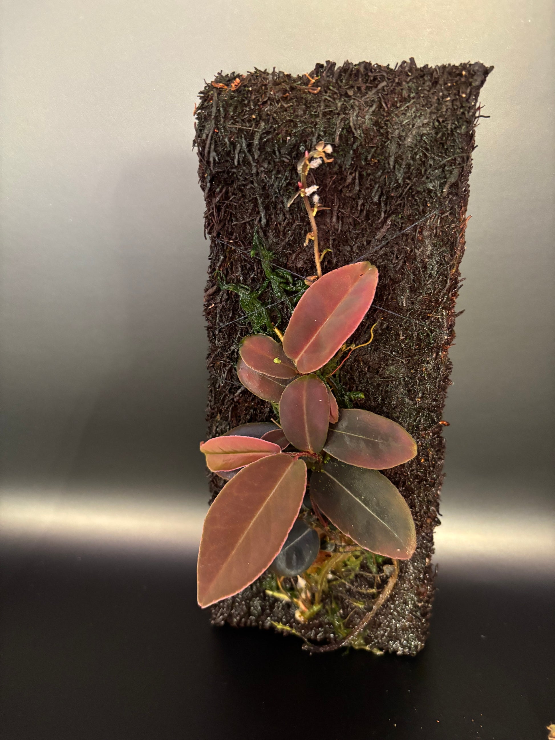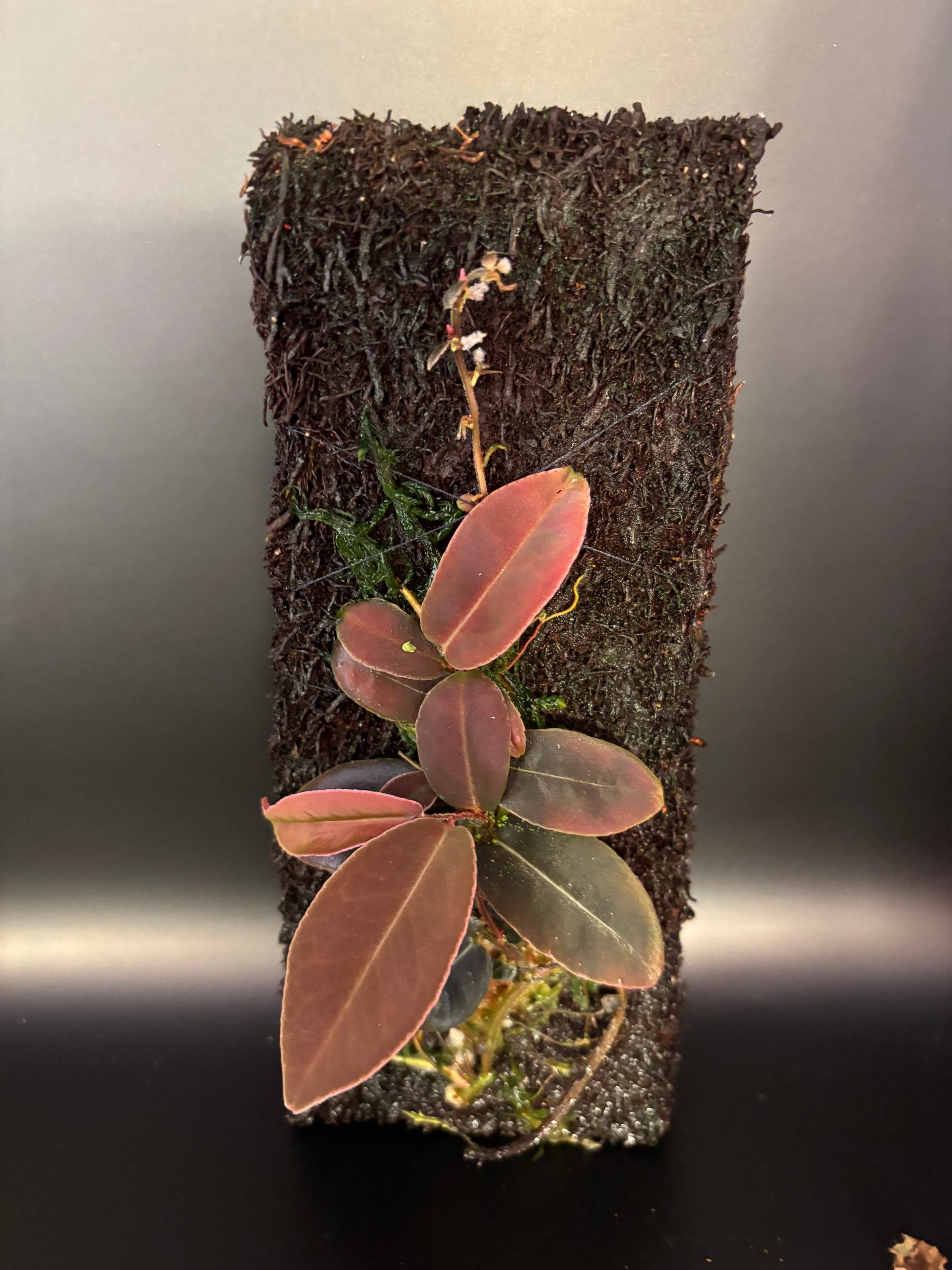 This unique species of Marcgravia originates from the humid forests of Central America. It features striking, metallic red mature leaves, making it a standout specimen for larger terrariums.