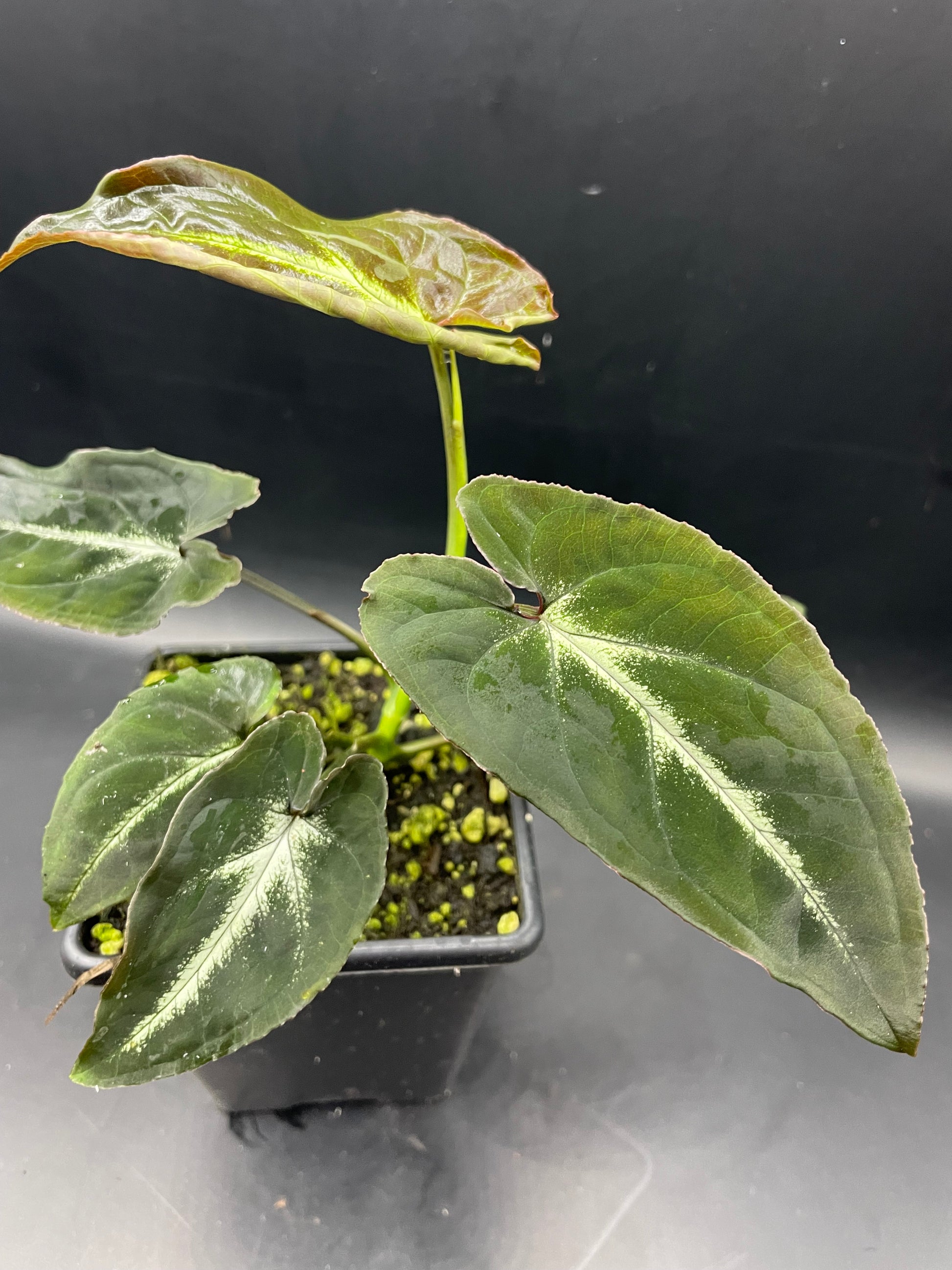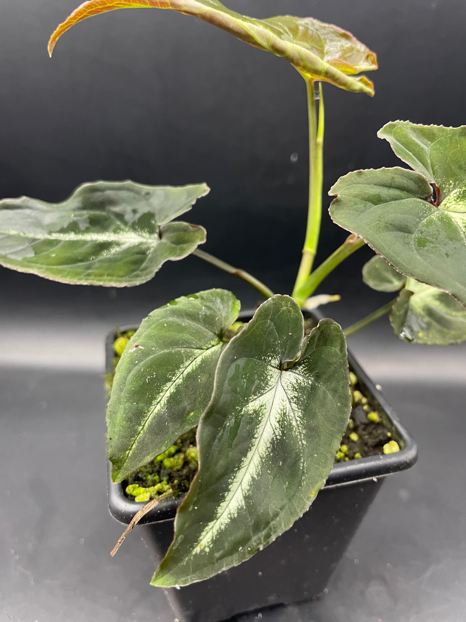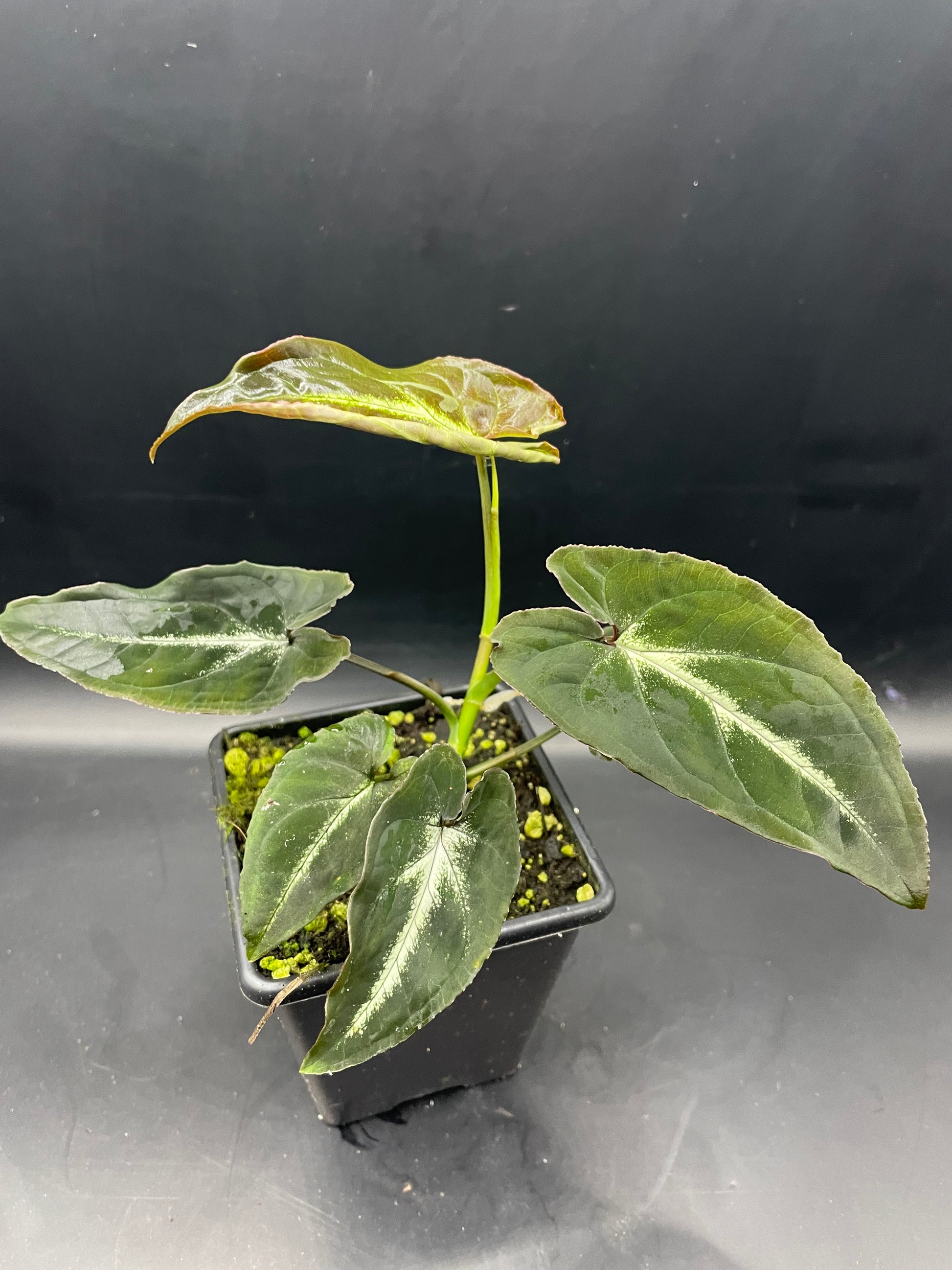 Gorgeous smaller species of Syngonium. Leaves have a clean veining with an almost neon grean shadow around them.